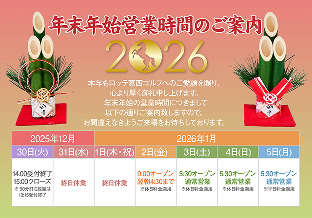 本年もロッテ葛西ゴルフへのご愛顧を賜り、心より厚く御礼申し上げます。